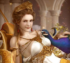Héra (a rómaiaknál Juno) a házasság istennője. Az olimposzi istenek első generációjához tartozik, vagyis Kronosz és Rheia gyermeke. Zeusz szemet vetett a gyönyörű hugára, és hidegtől reszkető kismadárrá változott, Héra magához ölelte, hogy felmelegítse. Ekkor Zeusz ismét felöltve férfialakját, megpróbálta magáévá tenni. Héra azonban mindaddig ellenállt, amíg Zeusz meg nem ígérte, hogy feleségül veszi, és királynővé teszi. Hérát ekkor cseppet sem zavarta Zeusz szerelmi előélete, Szentül hitte, hogy szépsége, szerelme megváltoztatja a férfit.